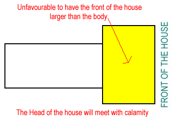 Under the good or bad layout of buildings derived from the Yang Zhai Shi Shu, the head of the family will meet with calamity if the " head " or the front of the house is larger than it's body.